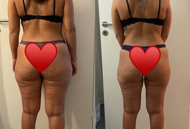 Seje Melissa har givet tilladelse til at dele sine før- og efterbilleder efter blot 4 EMS-træninger og 3 Anti-Cellulite behandlinger. Resultatet er en imponerende forbedring